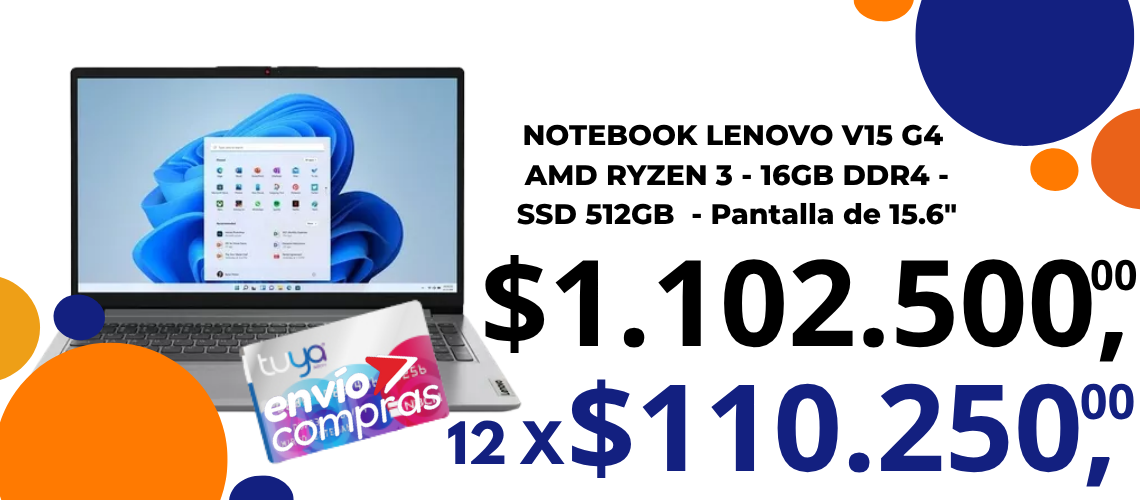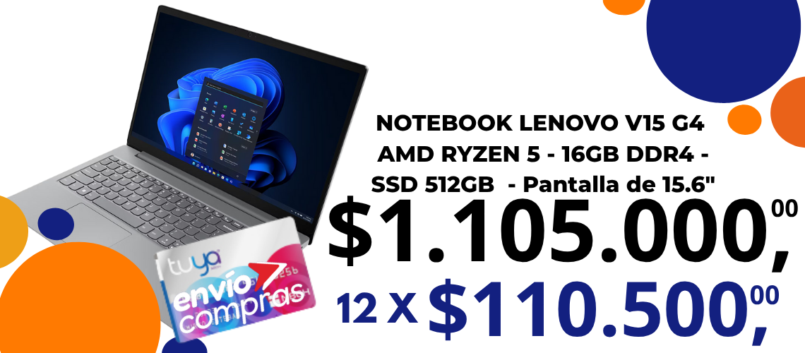 Notebook Lenovo V15,Ryzen 5 , 16GB, SSD 512GB, 15.6″$1.103.999,00Ryzen 516 GB Ram 512gb Disco 15,6" Pantalla